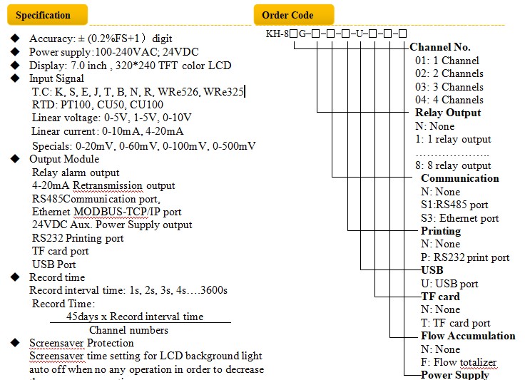 KH800G is high quality super-thin color paperless recorder (195x145x60.5mm, up to 8 channels), used the advanced technology, to be designed high quality and performance, isolated, high accuracy, universal use, to be aimed to monitor, record, analysis the processes in various industry application.